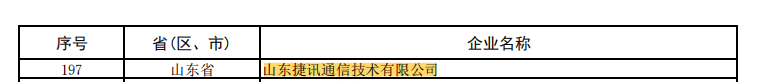 喜報!山東捷訊通信技術(shù)有限公司榮獲國家專精特新“小巨人”企業(yè)。